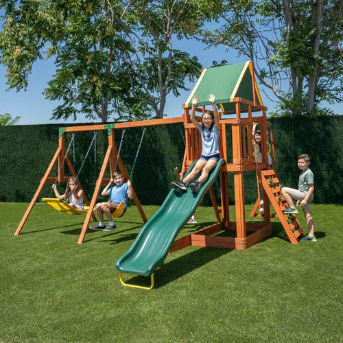 Sportspower Olympus Wood Swing Set with 3 Swings, Slide, and Monkey Bars