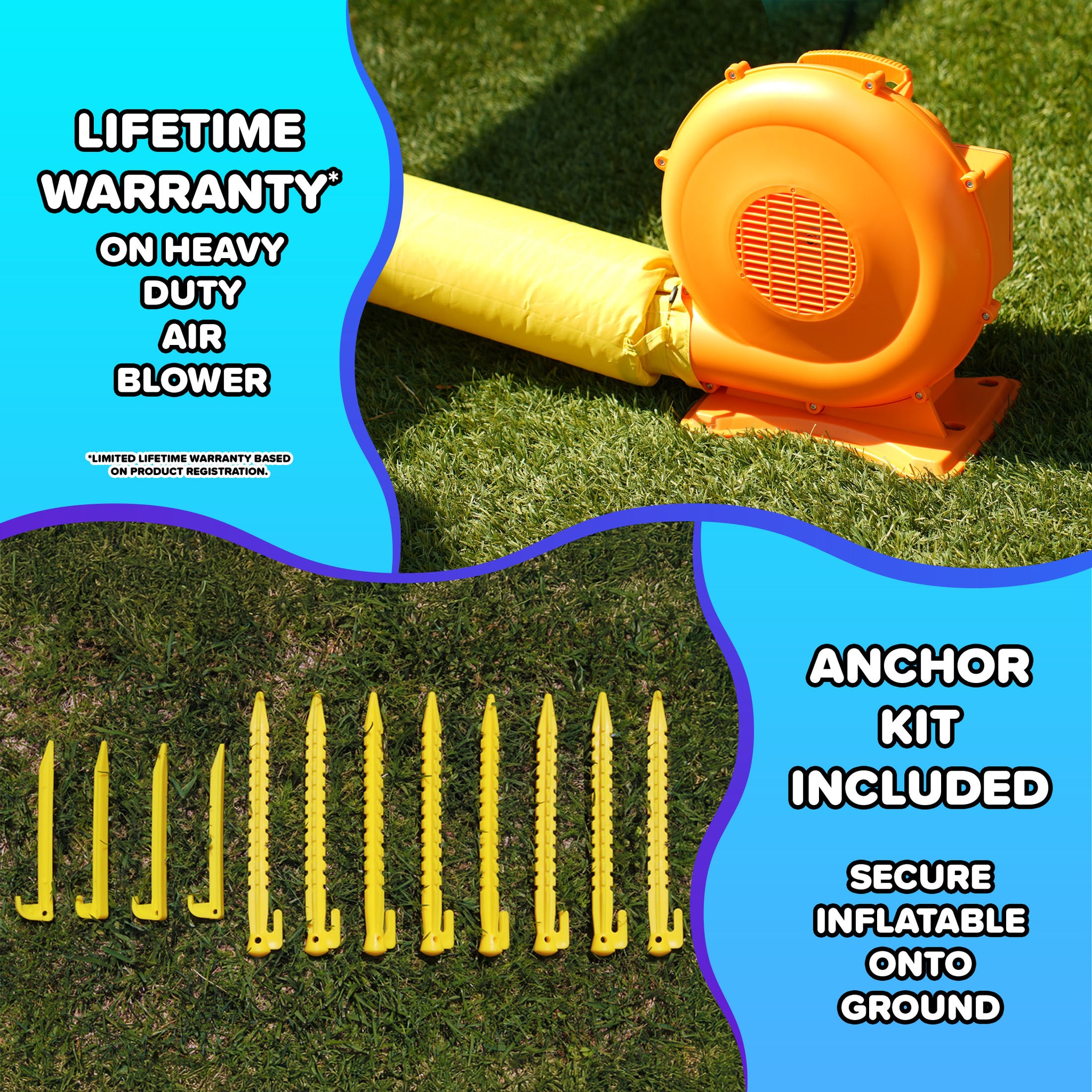 - Netted enclosure keeps all kids inside while they bounce for hours