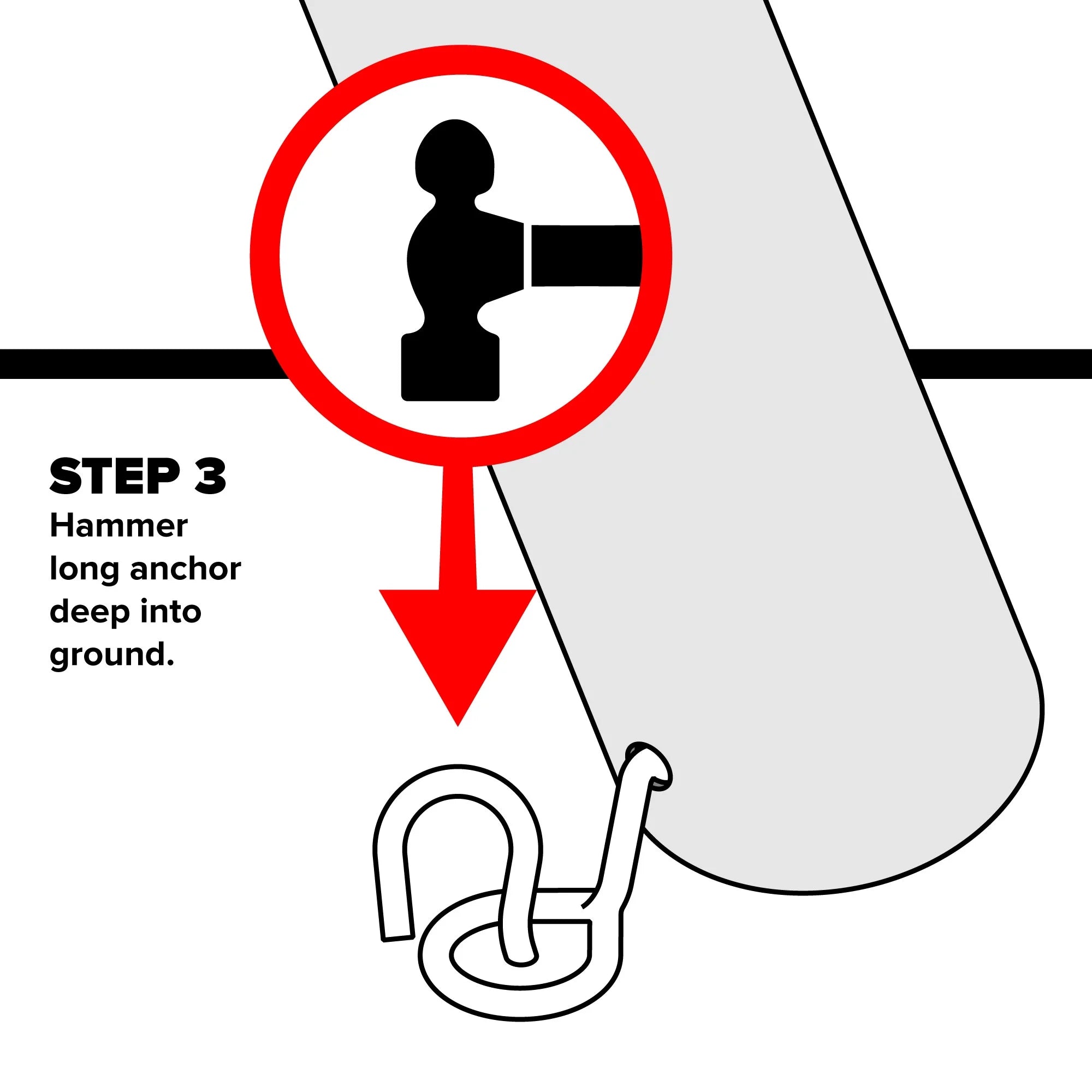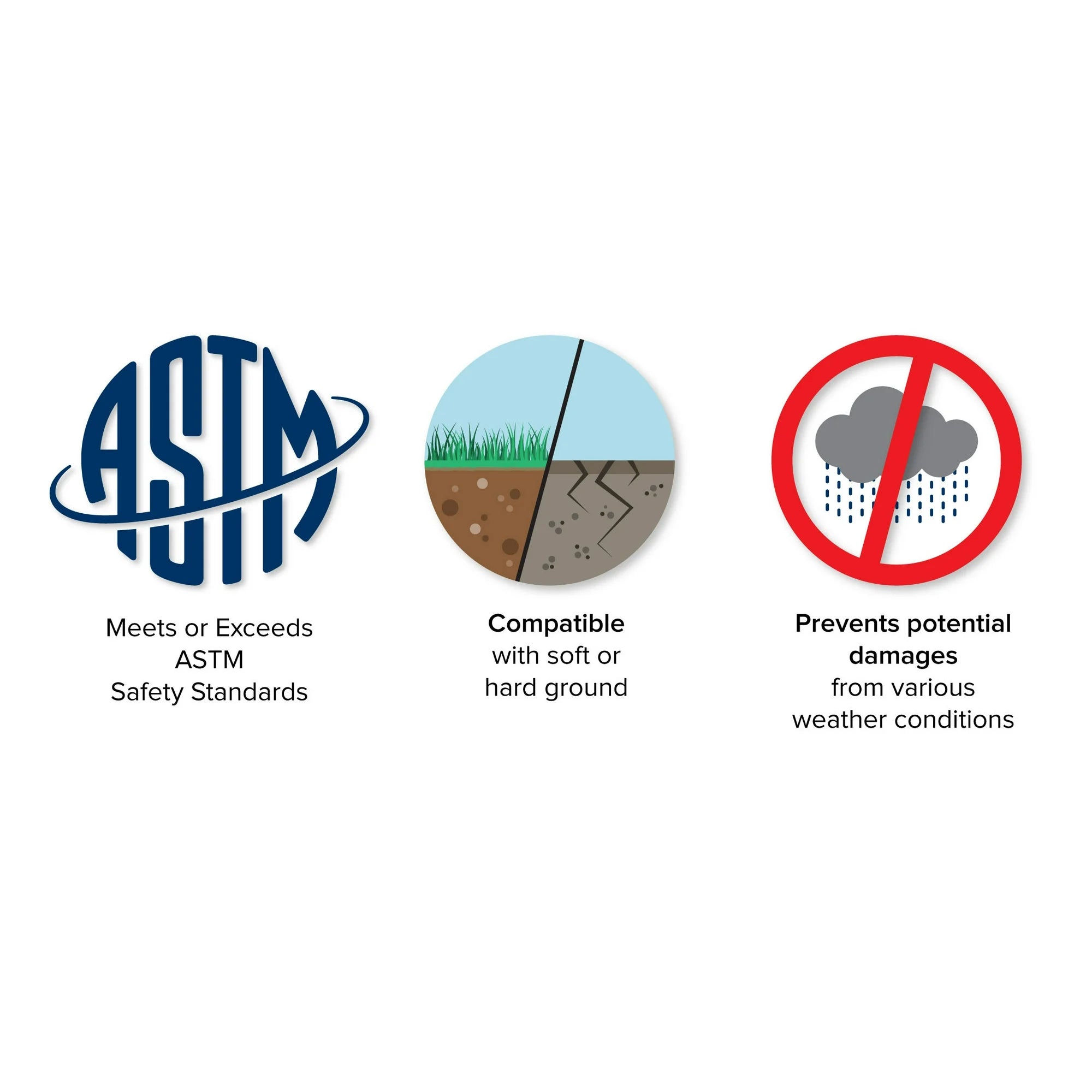 - Secures the product to the ground, preventing tipping over