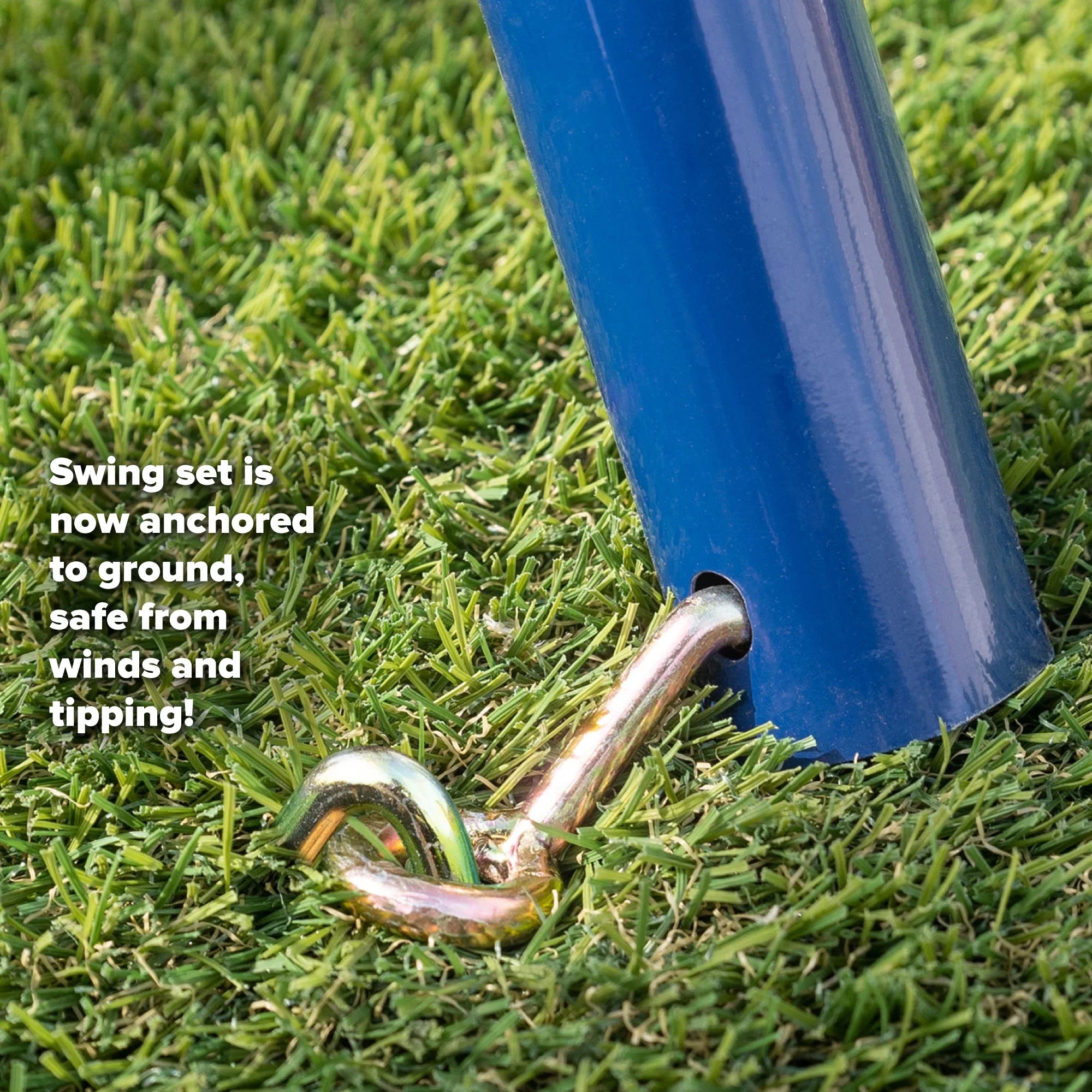 This 5-Piece Ground Anchor Kit allows you to anchor your swing set or trampoline onto the ground. Having this added security allows children to play while giving parents peace of mind, knowing that the swing set or trampoline is tightly secured. Anchoring play products can help prevent future damage and protect against various weather conditions (ex. strong winds and rain). Most anchor kits on the market include 4 anchors however this anchor kit includes a bonus corkscrew anchor for added safety.